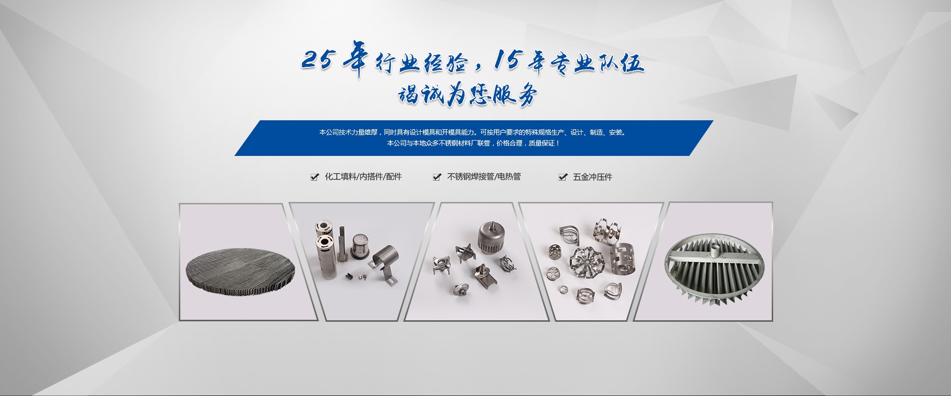 嘉興市久達(dá)不銹鋼有限公司原海鹽中晟不銹鋼有限公司,本公司是全國(guó)化工行業(yè)和中國(guó)石化總公司推薦新型填料、塔內(nèi)件及配件產(chǎn)品的專(zhuān)業(yè)生產(chǎn)廠。2009年建成標(biāo)準(zhǔn)化廠房,生產(chǎn)能力得到進(jìn)一步的提升,效率也更加高效。散堆填料采用高速?zèng)_床一次成型技術(shù)生產(chǎn)。
